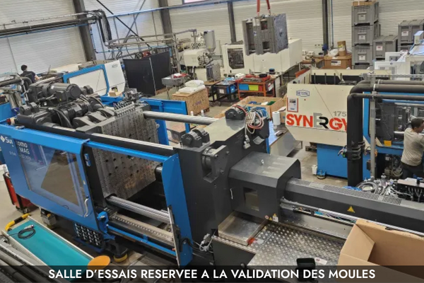 Le moule mis au point et prêt à produire est testé dans notre atelier avant livraison sur une de nos presses d'injection.
