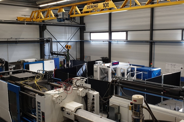 Notre centre d'essais permet de réaliser une intégration complète afin d'optimiser votre process. Une surface de 220 m² est libre dans notre atelier pour la qualification d'une ligne de production ( moule / presse / robot / assemblage ).